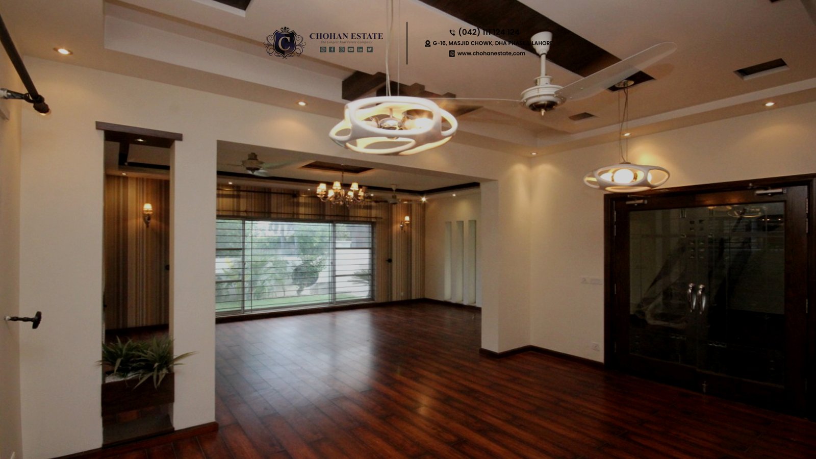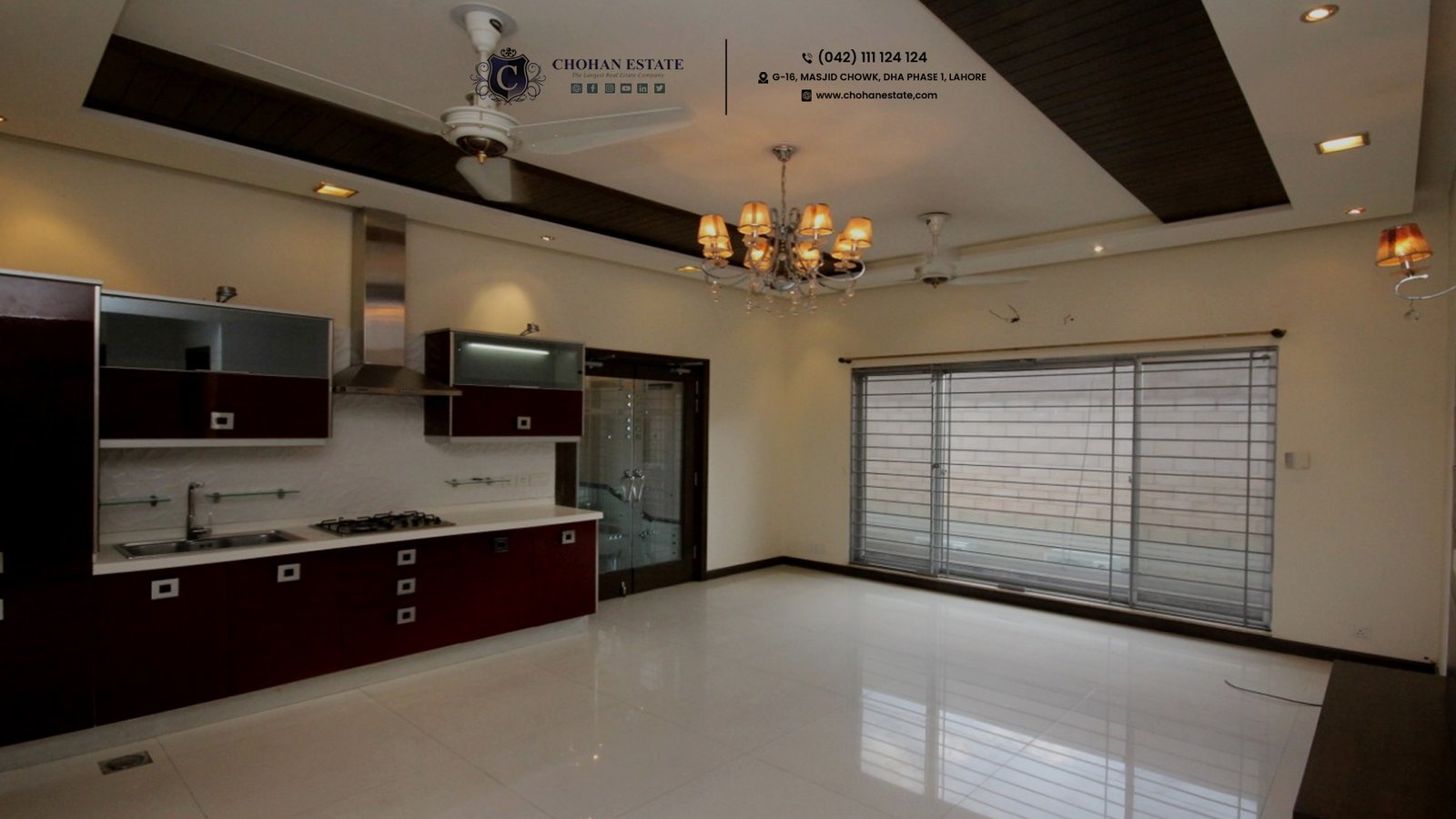 House is decorated with beautiful wall papers,  Fancy wall lights and Chendliers