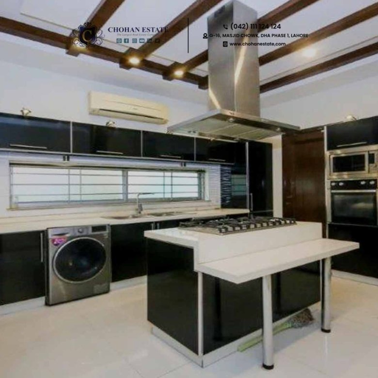 Located in the prime area of DHA Phase 5, near Jalal Sons and the park, this luxurious house offers everything you need for a comfortable and stylish living experience. Ideal for multinational executives and foreigners, it features: 5 spacious bedrooms with modern attached bathrooms, including stylish shower closets and jacuzzi baths. Built-in wardrobes for ample storage. Elegant drawing and dining rooms. 2 spacious TV lounges perfect for family time. A company fitted kitchen equipped with the latest accessories like microwave, oven, double door refrigerator, dishwasher, and an automatic washing machine. Dirty kitchen with the same design as the outer kitchen. A beautiful indoor terrace with a cozy sitting area, ideal for BBQs. Modern fall ceiling designs and Turkish-style chandeliers for a touch of elegance. AC units installed for comfort. A mix of tile and wooden flooring. 2 servant quarters in the basement for added convenience. This property is located in the heart of DHA Phase 5, offering easy access to commercial areas and recreational spots. Ideal for those seeking a refined lifestyle. Rent: PKR 310,000 For more details or to schedule a visit, please feel free to contact us.